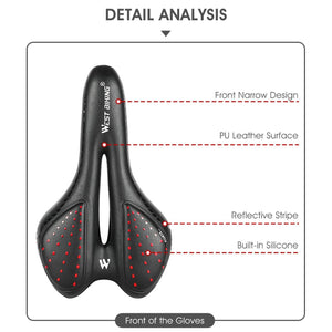 Upgrade your cycling experience with the WEST BIKING Silicone Thickened Bicycle Seat. Crafted from high-quality PU material, this bicycle seat is designed for comfort and durability. Here's what makes it stand out: