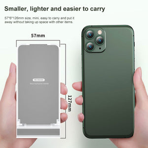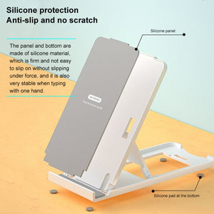 - Silicone panel and foot pads ensure a non-slip grip without damaging the phone