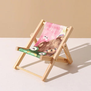 Bear Design Wooden Craft Mini Beach Chair Phone Holder