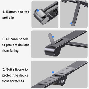 3-in-1 Portable Foldable Aluminum Phone and Tablet Stand (Silver)
