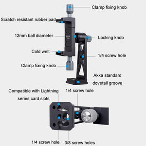 Aluminum Alloy Swivel Cold Shoe Mobile Phone Clip Tripod for Photography