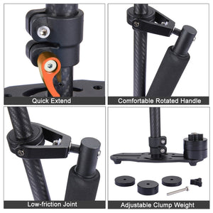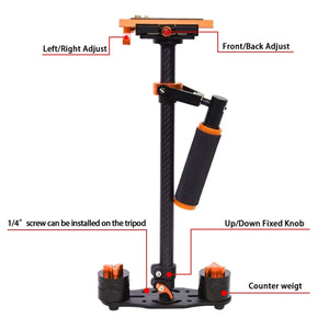 Experience smooth and stable footage with the YELANGU Carbon Fiber Handheld Stabilizer. This versatile stabilizer is designed for DSLR and DV digital video cameras, offering a capacity range of 0.5-3kg.