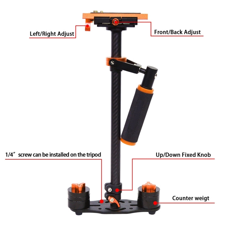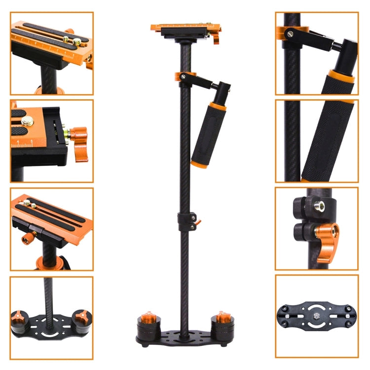 YELANGU 38.5-61cm Carbon Fiber Handheld Stabilizer for DSLR & DV Digital Video & Cameras, Capacity Range 0.5-3kg(Orange) - Professional Carbon Fiber Camera Stabilizer