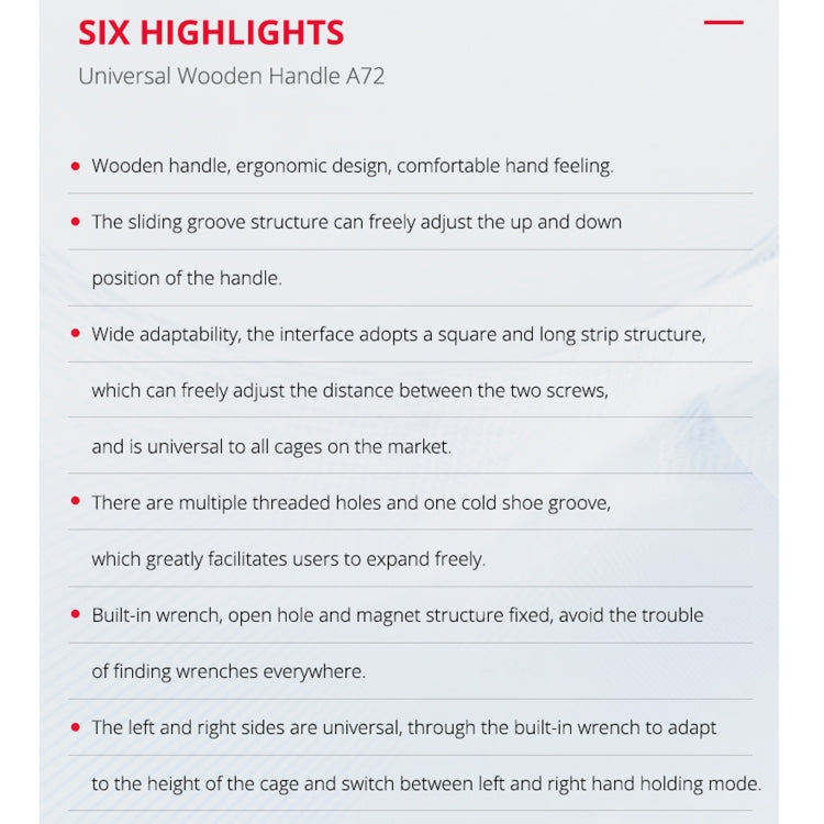 YELANGU A72 Universal Camera Wooden Handle with Adjustable Grip and Accessory Expansion