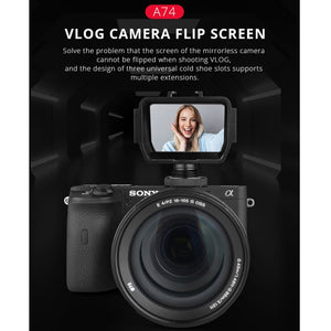 YELANGU A74 Universal Vlog Camera Flip Screen with Expandable Cold Shoe Slots