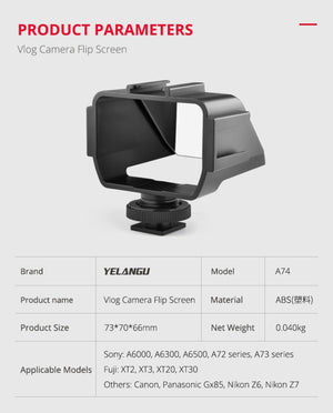 YELANGU A74 Universal Vlog Camera Flip Screen