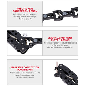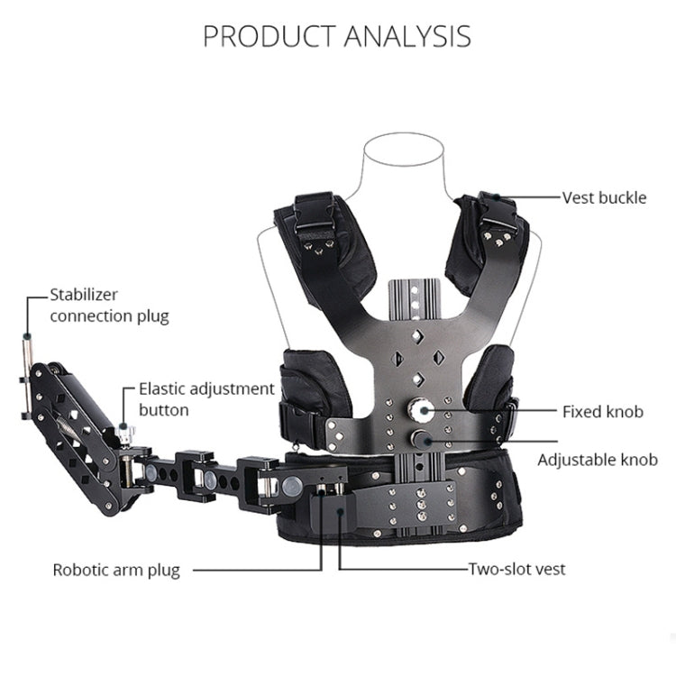 - Shock-absorbing Features: Equipped with a shock-absorbing vest and a single shock-absorbing spring arm, this system is suitable for cameras and SLRs, offering stability and smooth operation.
