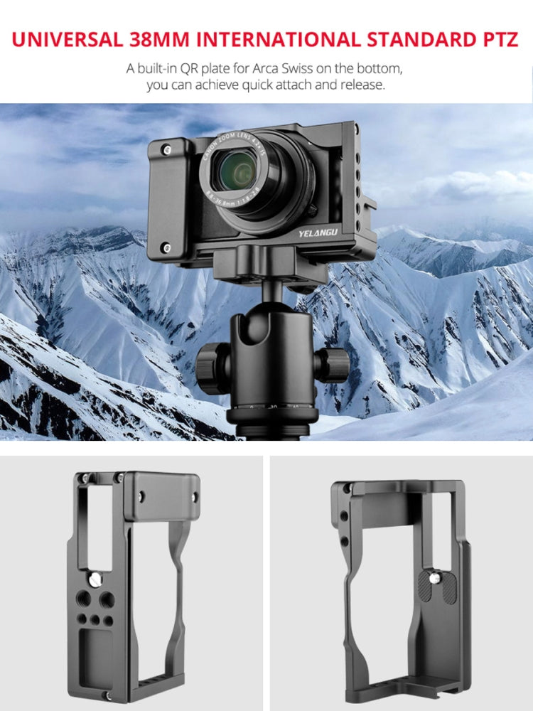 Enhance your videography with the YELANGU C13 YLG0713A Video Camera Cage Stabilizer designed for the Canon Powershot G7X Mark III / G7X3. This sleek black stabilizer offers unparalleled functionality and durability, making it an essential accessory for your camera setup.