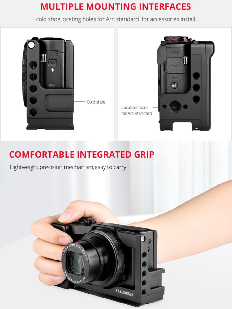 YELANGU C13 YLG0713A Video Camera Cage Stabilizer for Canon Powershot G7X Mark III / G7X3 (Black)