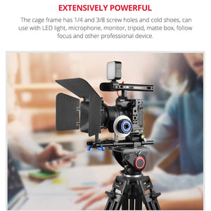 - Optimized Design: The cage includes 1/4 and 3/8 screw holes, cold shoe, and Arri stop holes interface, providing multiple mounting options for your equipment.