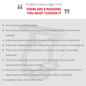 Elevate your videography experience and unleash the full potential of your Nikon Z6/Z7 camera with the YELANGU C15-B YLG0711A-A Video Camera Cage Stabilizer.