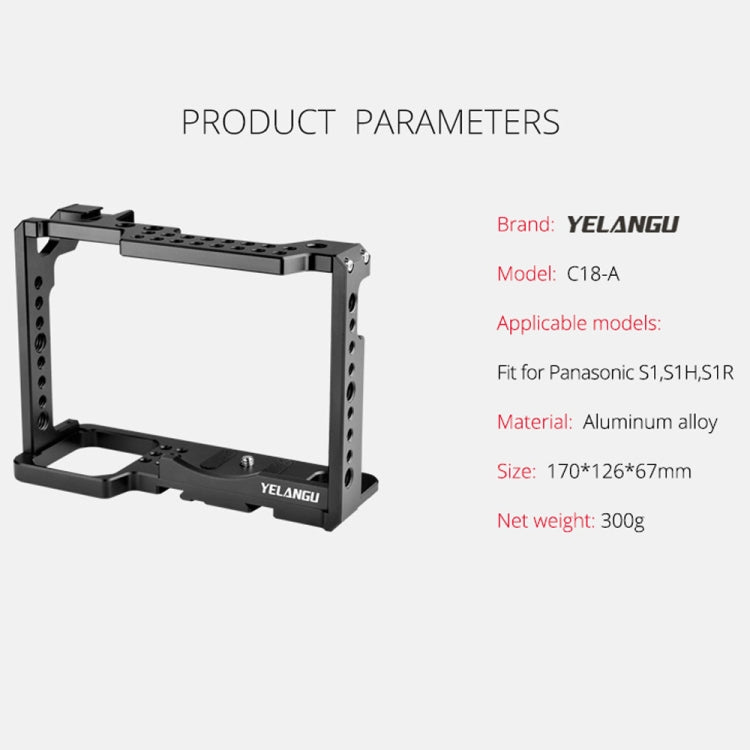 YELANGU C18 Video Camera Cage Stabilizer for Panasonic Lumix DC-S1H / DC-S1 / DC-S1R (Black)