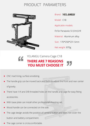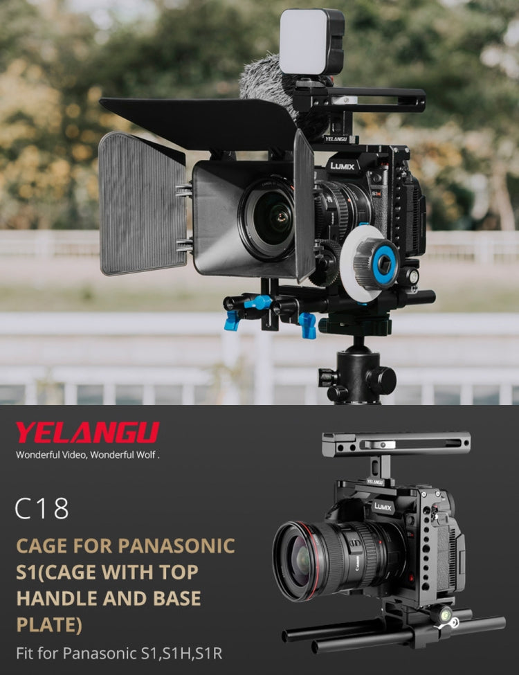 Enhance your videography with the YELANGU C18 YLG0915A-C Video Camera Cage Stabilizer designed specifically for Panasonic Lumix DC-S1H, DC-S1, and DC-S1R cameras. This stabilizer offers: