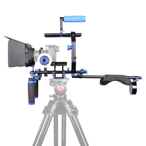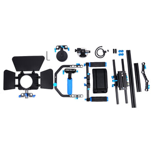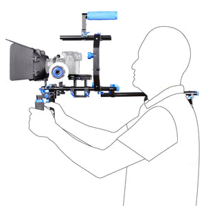YELANGU D206 C-Type Handle Camera Shoulder Rigs Mount Kit with Matte Box & Follow Focus (Blue)