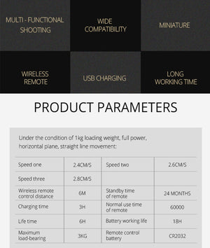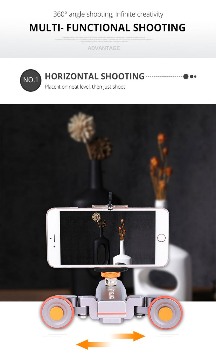 - Straight line shooting, equivalent to an electric slide for smooth, professional footage