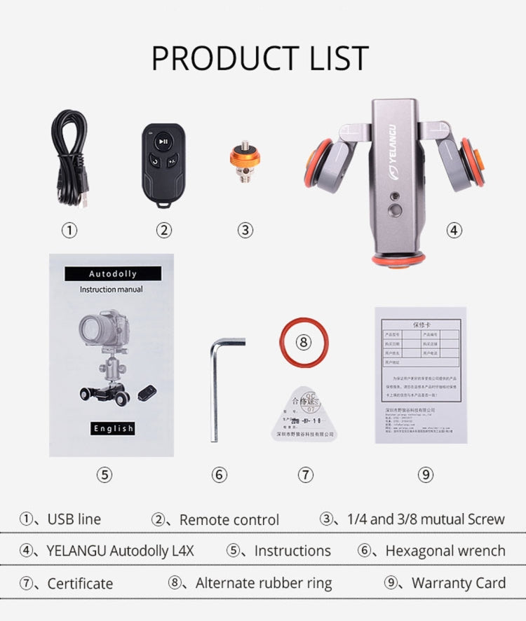 YELANGU L4X Camera 3-wheel Dolly II Electric Track Slider - Grey
