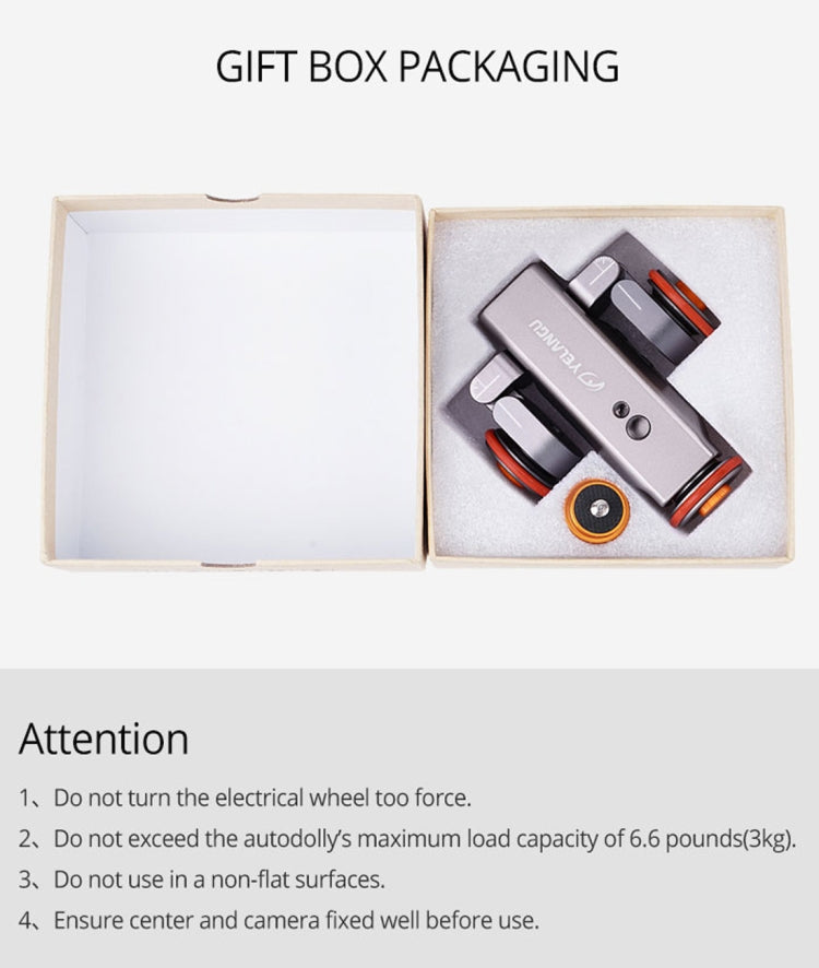 Upgrade your videography game with the YELANGU L4X Camera 3-wheel Dolly II Electric Track Slider. This versatile dolly car is designed to elevate your shooting experience, whether you're using DSLR cameras, home DV cameras, GoPro, or smartphones. The sleek grey design adds a touch of modernity to your equipment.