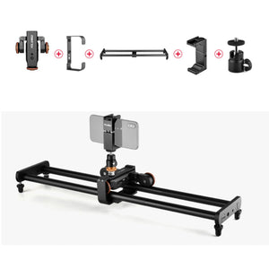 YELANGU L60E 60cm Slide Rail Track and L4 3-Wheel Video Dolly with PC142 Phone Clamp & Ballhead