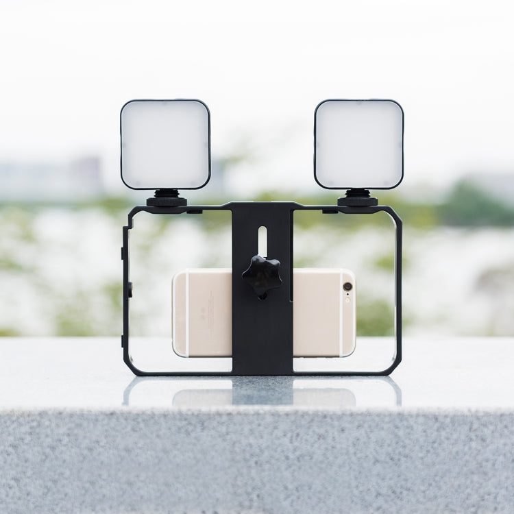 YELANGU PC201 YLG1801A Vlogging Live Broadcast LED Selfie Light Smartphone Video Rig Handle Stabilizer Kit with Expandable Mobile Phone Cage and Versatile Connectivity